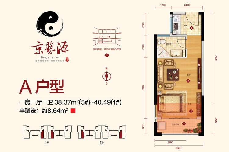 京藝源A户型图1室1厅1卫0厨建筑面积:38.37㎡(建筑面积:38.37㎡)