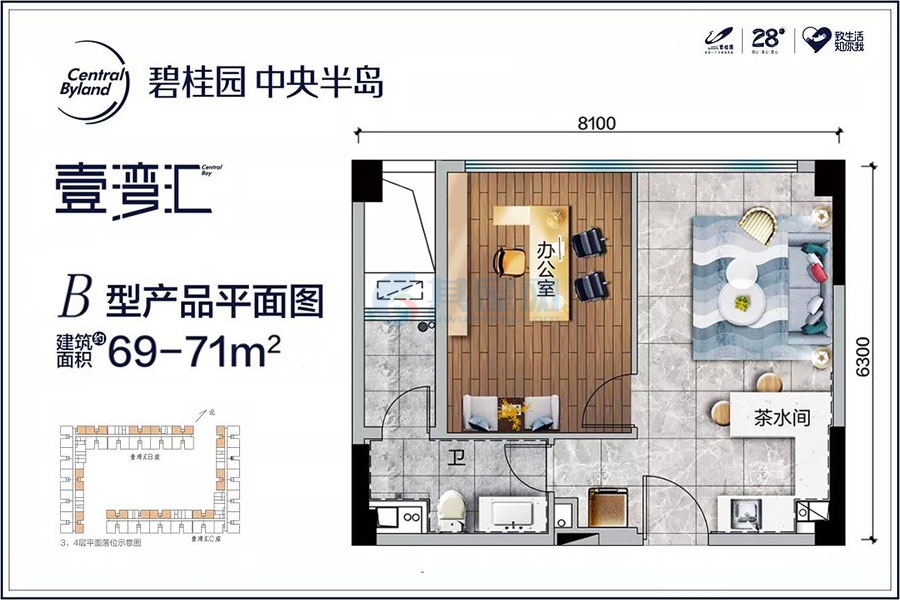 碧桂园中央半岛壹湾汇SOHO推出5套房源,建面为101.5平米、101.8平米,新春享85折,折后总价135-140万/套