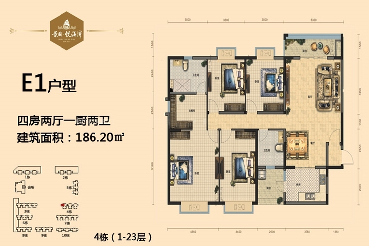 E1户型-4房2厅1厨2卫-186.20㎡(建筑面积:㎡)