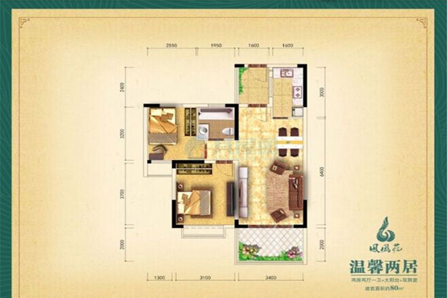 三亚凤凰苑-建面约80㎡-两房两厅(建筑面积:80㎡)