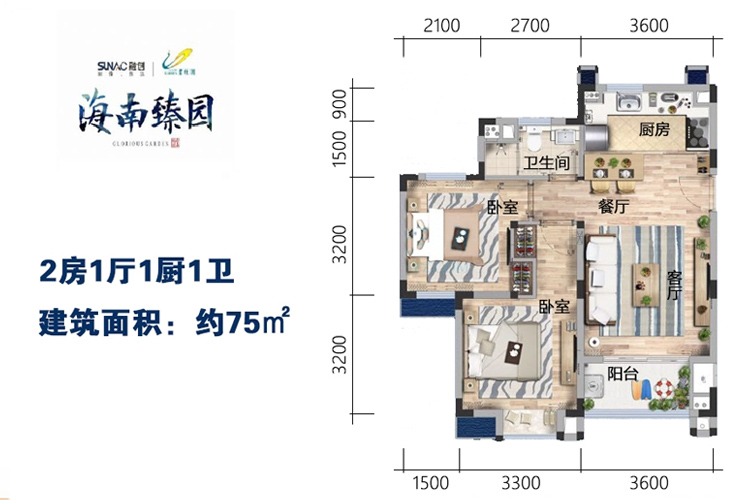 项目规划有高层瞰海公寓、风情洋房、奢华别墅等。目前主打户型为60-70平的小户型,一房可变两房且赠送面积大。