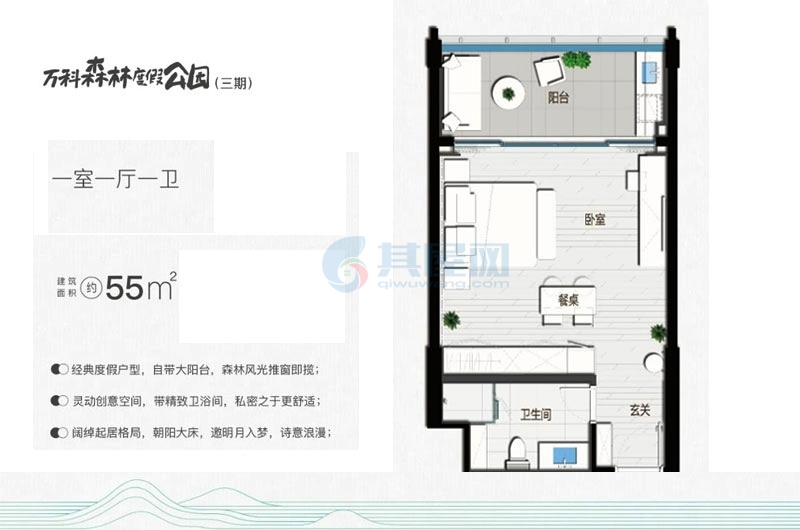 万科湖畔度假公园70年住宅推出7套房源,万科湖畔度假公园建面为100.66-104.14平米三房户型,万科湖畔度假公园总价271-310万/套