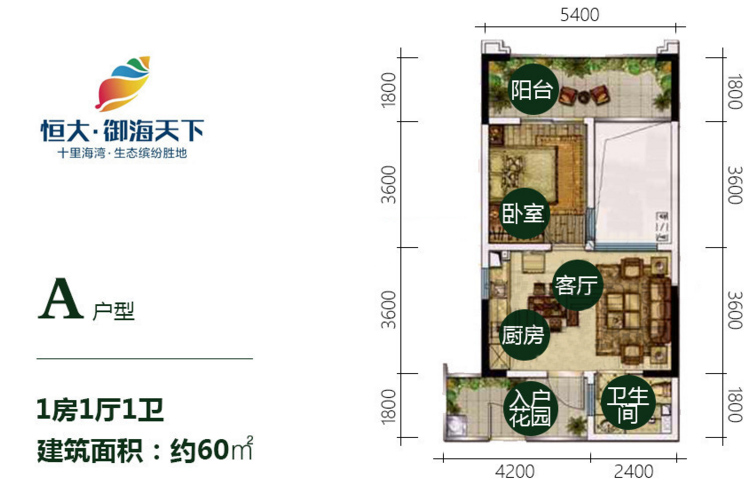 恒大御海天下推出6套房源,建面52.91-86.59平米一至两房户型,单价约12573-13266元/平,总价66-109.8万/套