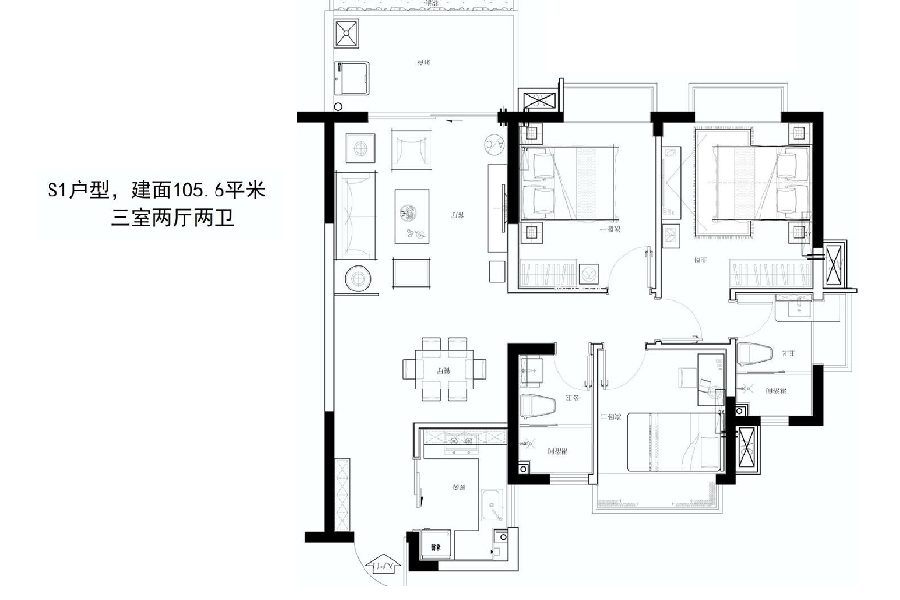 3房2厅2卫(建筑面积:105.6㎡)
