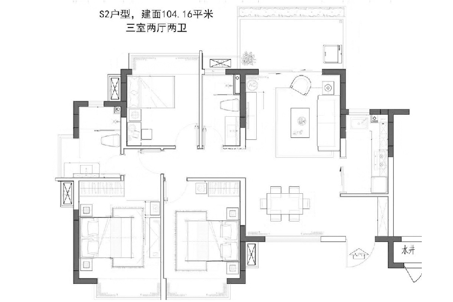3房2厅2卫(建筑面积:104.16㎡)