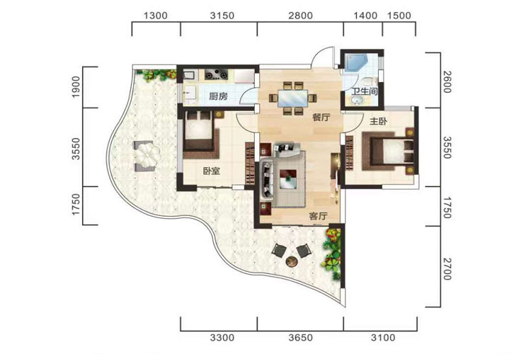 项目规划有高层瞰海公寓、风情洋房、奢华别墅等。目前主打户型为60-70平的小户型,一房可变两房且赠送面积大。