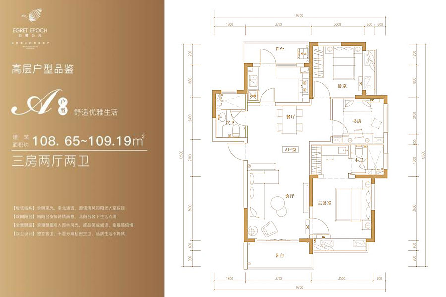 A户型-建面约108㎡-三房两厅两卫(建筑面积:108㎡)