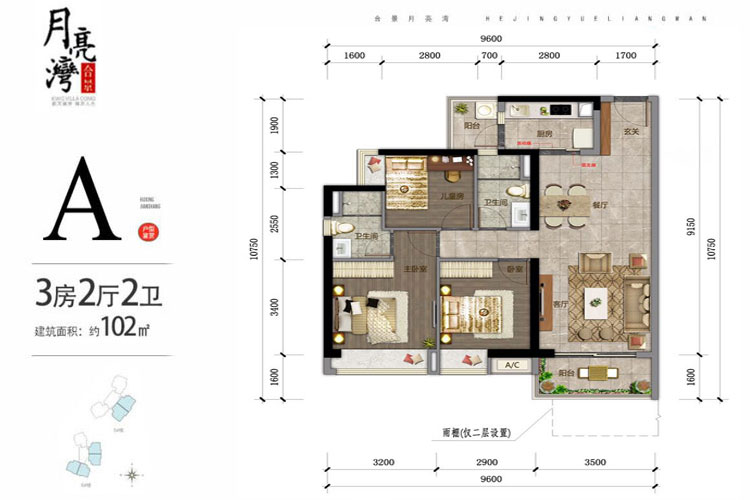A户型-三房两厅一厨两卫 102㎡(建筑面积:㎡)