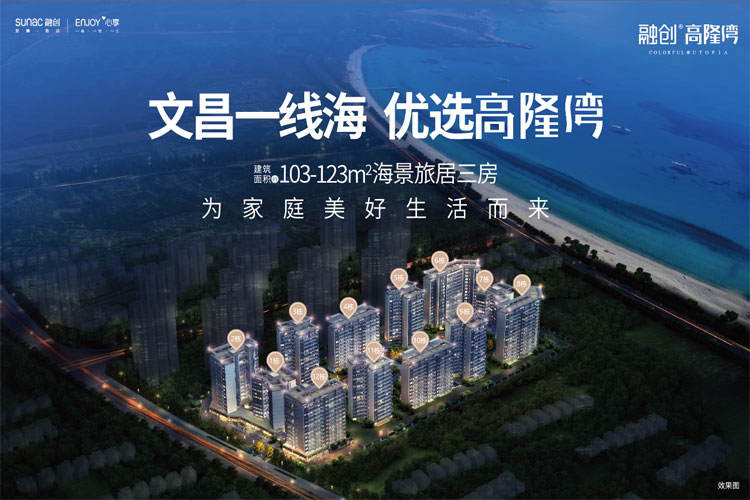 文昌融创高隆湾海景旅居住宅在售,建面为102-125㎡三房户型,价格为10600-14500元/㎡ 融创高隆湾售楼电话:0898-66684445,二十四小时免费专车看房