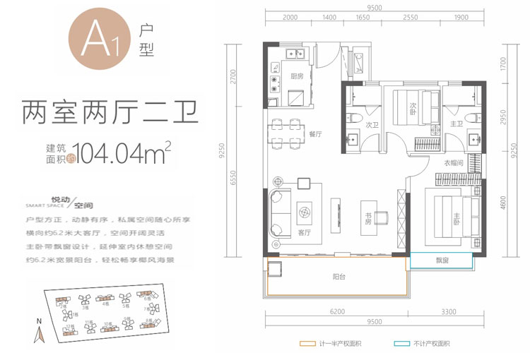 A1户型-两房两厅两卫 104.04平(建筑面积:104.04㎡)