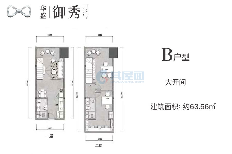 B户型-建面约63.56平(建筑面积:63.56㎡)