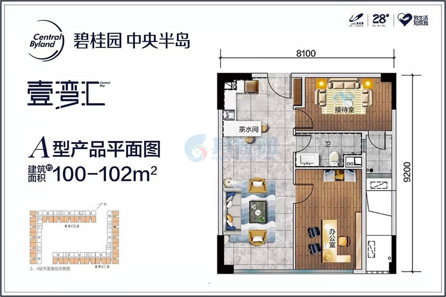碧桂园中央半岛壹湾汇SOHO推出5套房源,建面为101.5平米、101.8平米,新春享85折,折后总价135-140万/套