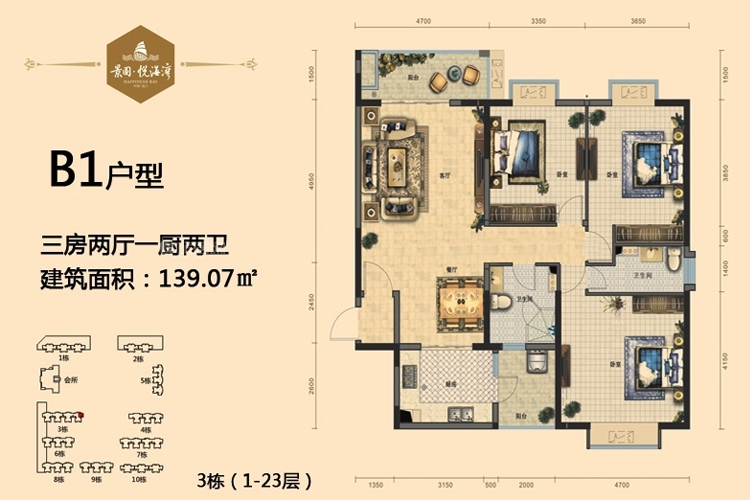 B1户型-3房2厅1厨2卫-139.07㎡(建筑面积:㎡)