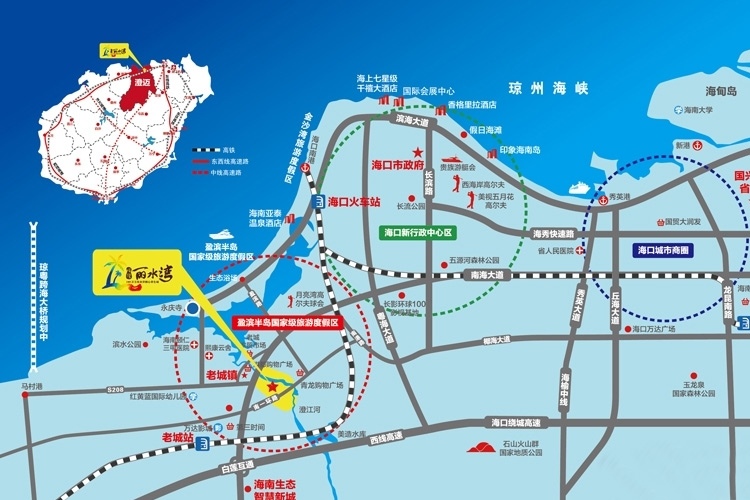 项目沿海而建且北邻琼州海峡东临文澜江。琼州海峡的内海湾是稀少的天然滨海浴场,海岸线往外200内海域水深不足两米,浅滩可游泳让你零距离接触一线原生滨海景观,滨海风情生活轻松享。