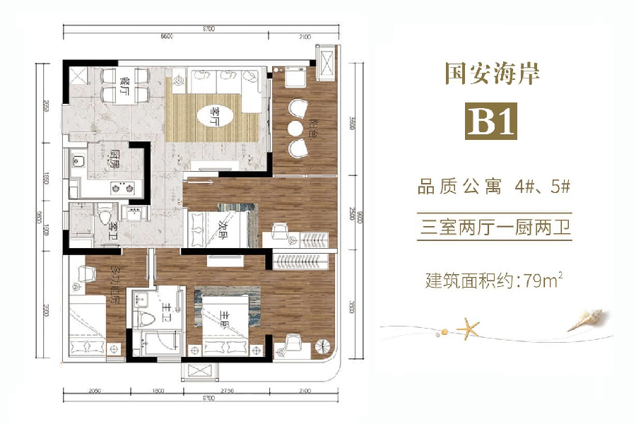 国安海岸海景房在售,建面为68-77平米两房至三房户型,总价100万/套!